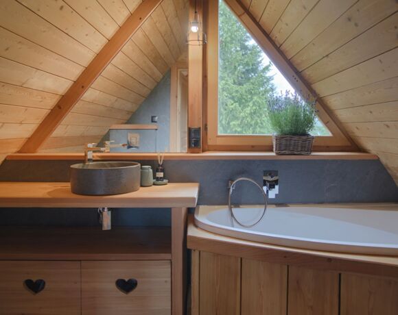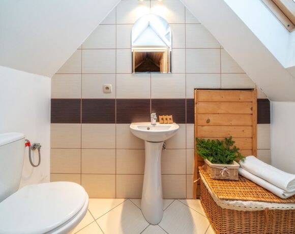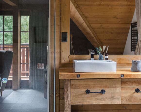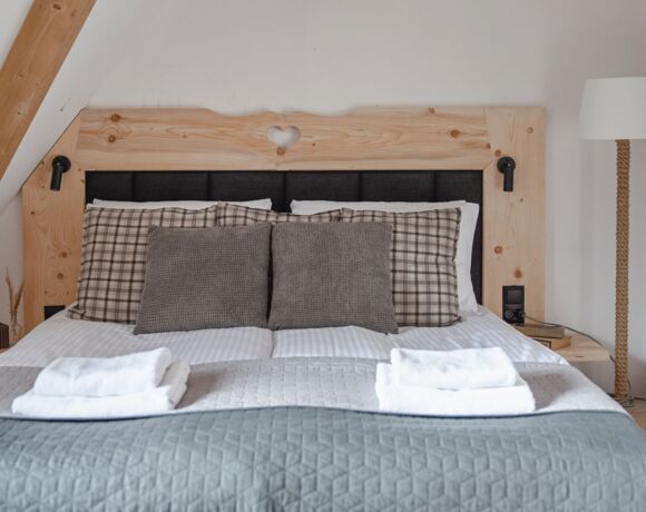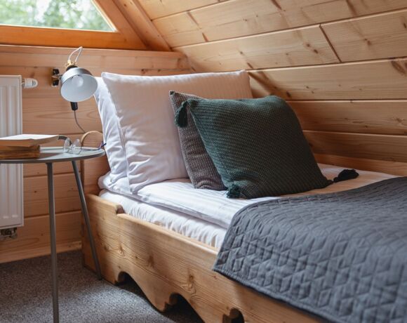 W zależności od wybranego domku, do Twojej dyspozycji oddajemy od jednej do kilku sypialni. Posiadamy sypialnie z łóżkami podwójnymi, idealne dla par, pokoje z łóżkami pojedynczymi, odpowiednie dla dzieci czy przyjaciół, a także opcje z dodatkowymi miejscami noclegowymi, jak komfortowe rozkładane sofy w salonach. Część domków dysponuje dwiema łazienkami - jedna z wanną, druga z prysznicem, co jest trafnym rozwiązaniem przy większej liczbie osób. W każdym domku znajduje się aneks kuchenny lub prywatna kuchnia, umożliwiająca samodzielne przygotowywanie posiłków. Układ pomieszczeń sprzyja zarówno wspólnym chwilom, jak i możliwości wycofania się do prywatnej przestrzeni.